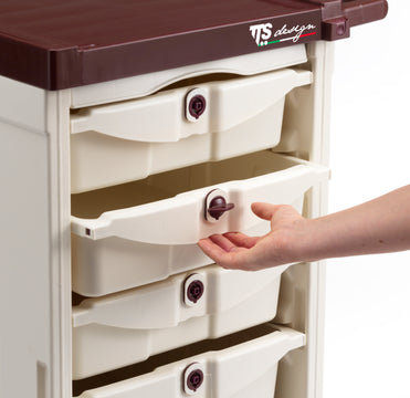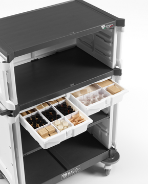 - Modular: Vários tipos de acessórios, como gavetas ou prateleiras, permitem personalizar o carro segundo variadas necessidades, mesmo a nível de design com impressão do seu logo/imagem/slogan nos painéis frontais do equipamento.