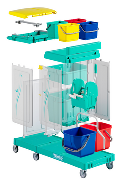 Carrinho de limpeza multifuncional compacto, de alta performance e robustez, desenvolvido para os utilizadores que valorizam qualidade, eficiência e ergonomia.