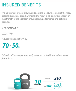 A sua prensa TTS WIZ torna-o perfeito para utilização com sistemas de mopas planas, como a TTS UNI SYSTEM, que oferecem um poder de lavagem, secagem e abrilhantamento superiores.