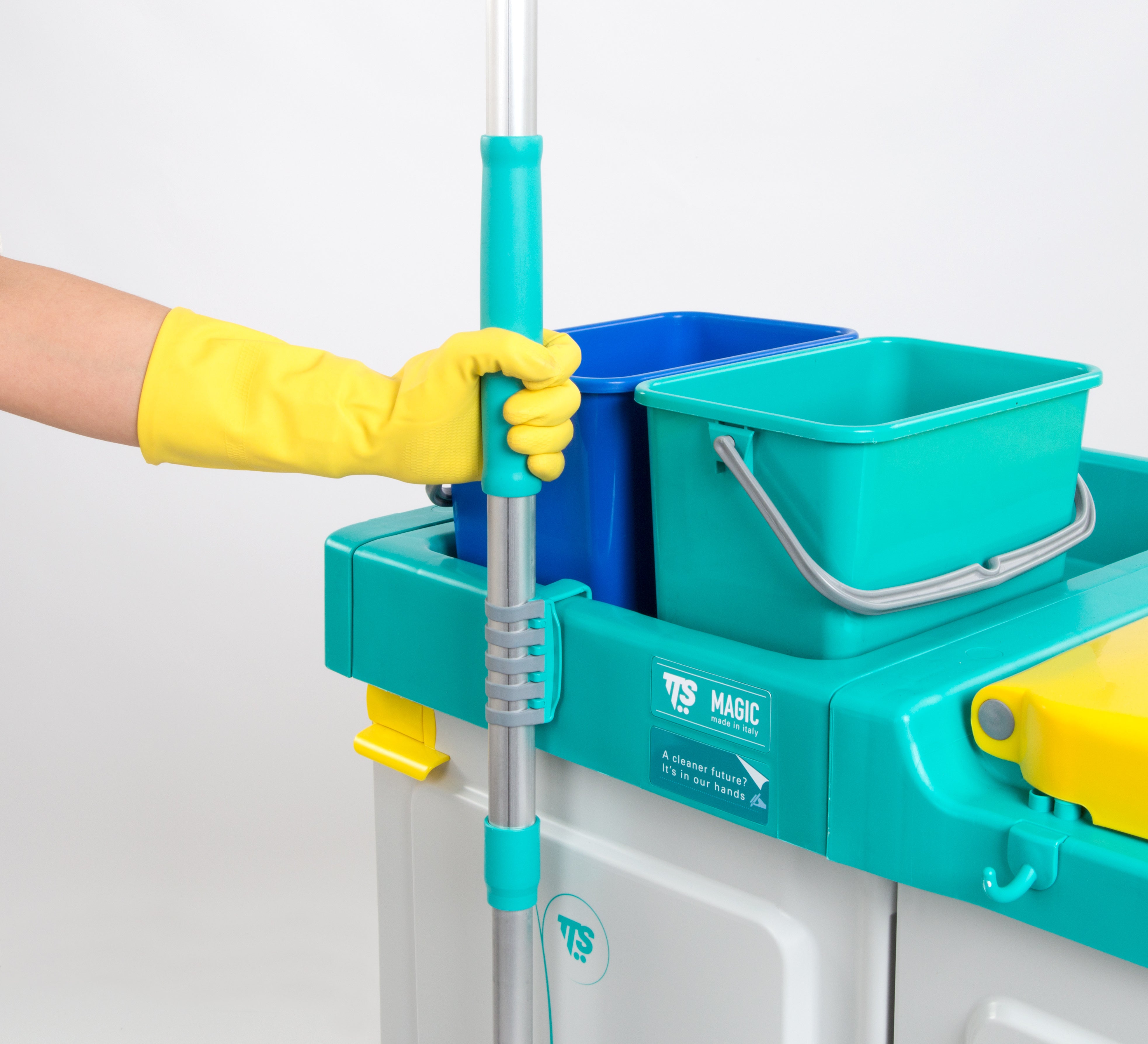 Forma prática e segura de apoiar o cabo em qualquer lado, seja uma parede, um parapeito ou mesmo num carrinho de limpeza.