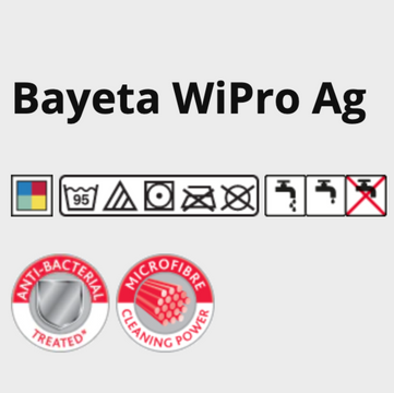 Super Higiene: O pano Wipro tem propriedades antibacterianas que previnem o desenvolvimento de bactérias, mesmo no pano húmido. Isto foi certificado pelo Instituto Hohenstein na Alemanha.